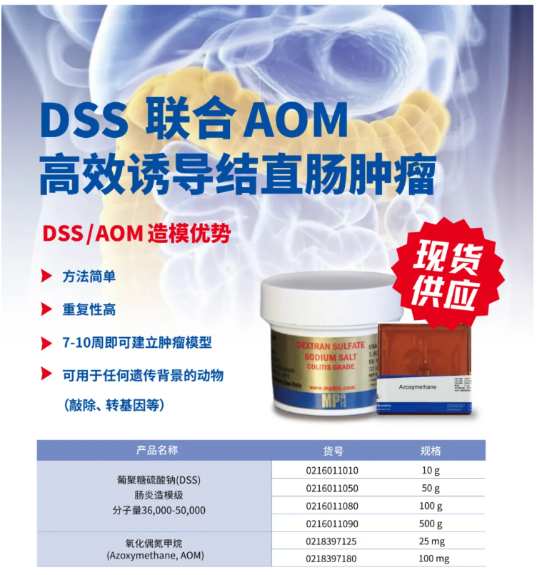 葡聚糖硫酸鈉(Dextran Sulfate Sodium Salt,DSS) 是一種聚陰離子衍生物,常用于誘導建立動物潰瘍性結腸炎模型,是目前腸炎造模研究領域金標準。MP Biomedicals 生產的DSS具有高質量、高純度、高重復性的特點。迄今為止,有超過10,000篇科學文獻引用,有效性得到了業界廣泛認可。